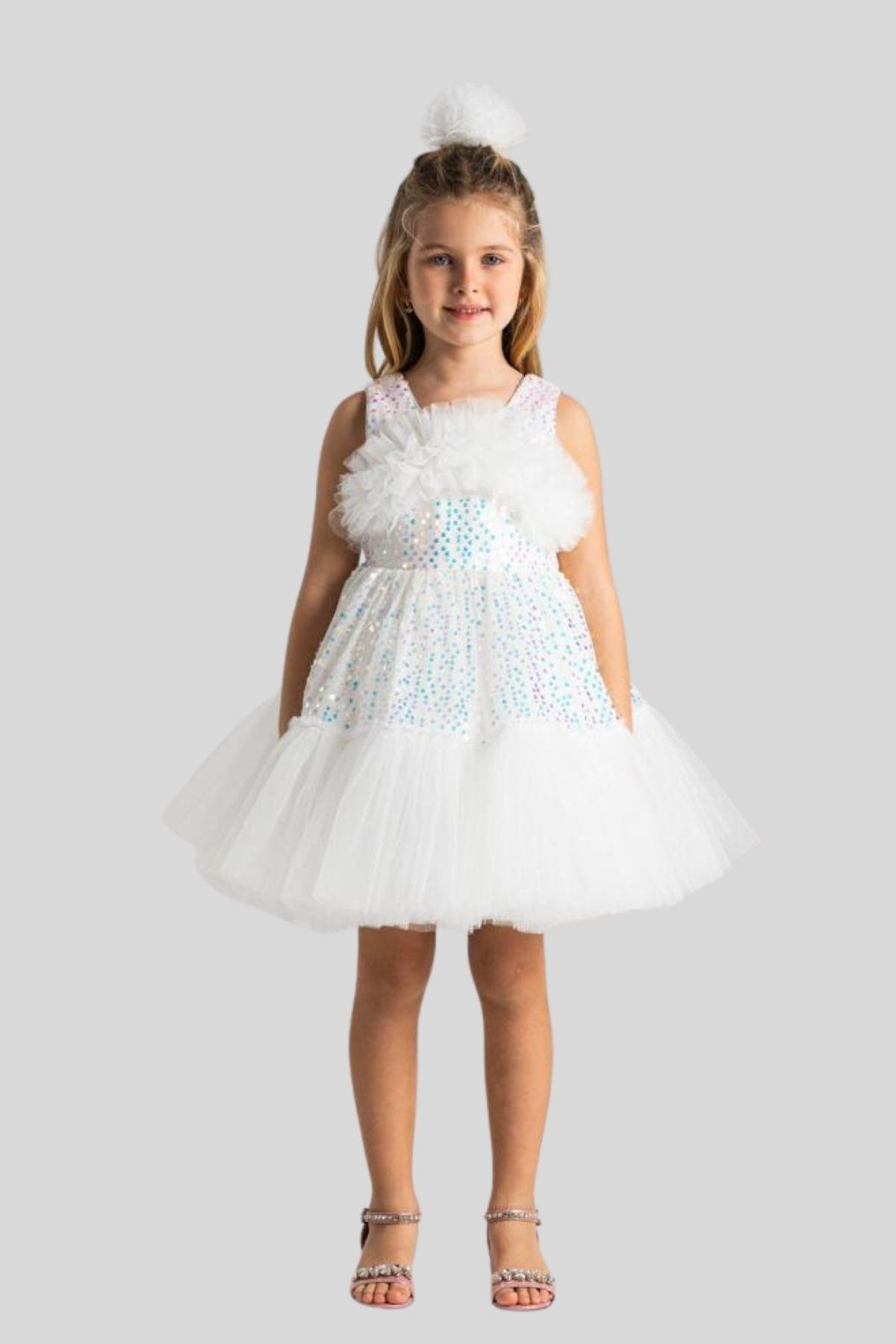 6-10 Yaş Kız Çocuk Pullu Abiye Ekru