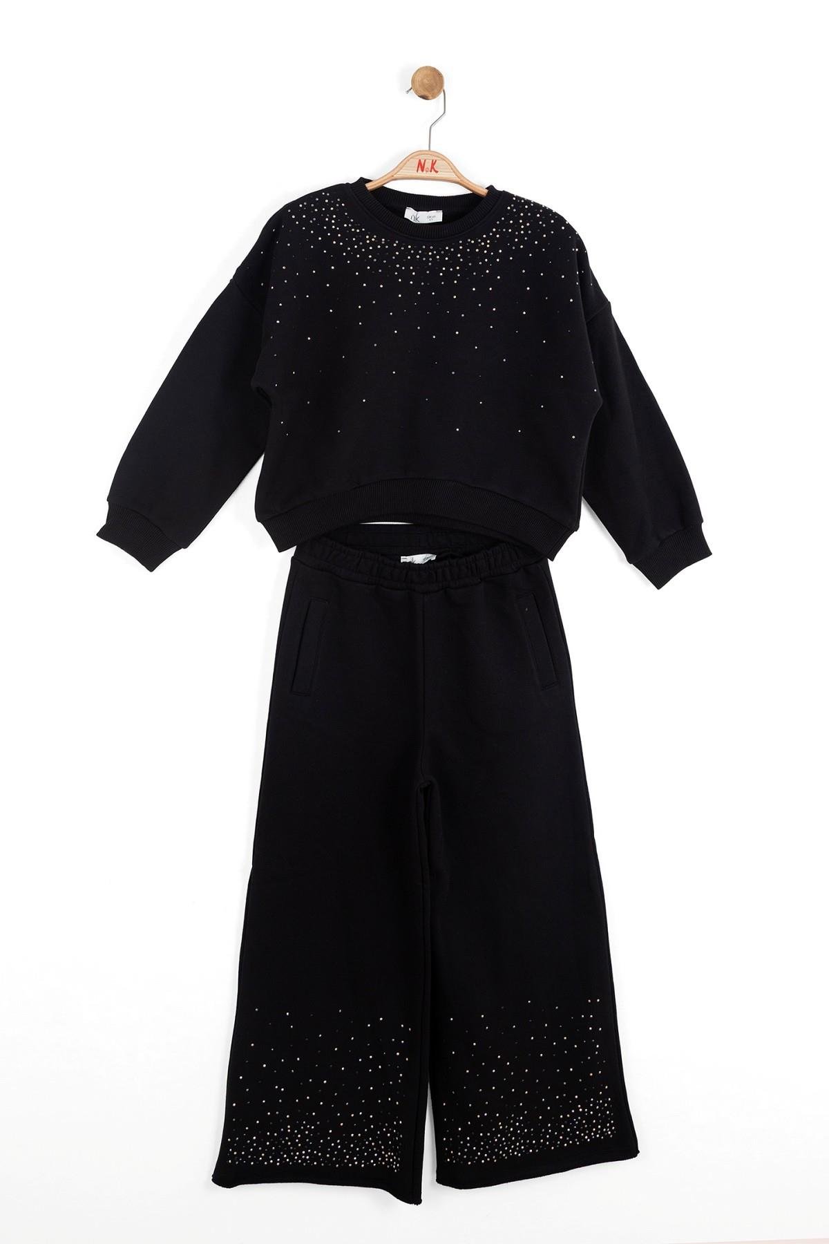 8-14 Yaş Kız Çocuk Taş İşlemeli Eşfman Takım Siyah (NK25KK19300)