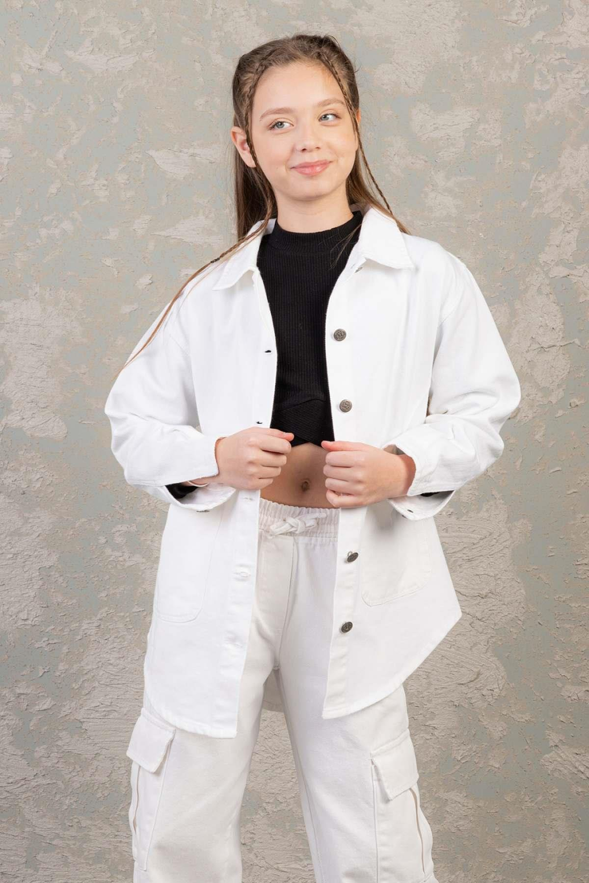 9-14 Yaş Kız Çocuk Krem Denim Ceket (DMB24YK09645)