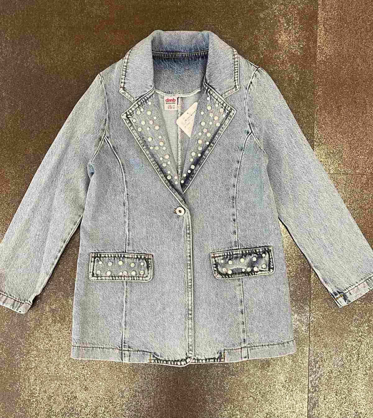 9-14 Yaş Kız Çocuk Yakası İşlemeli Ceket (DMB24YK02947)