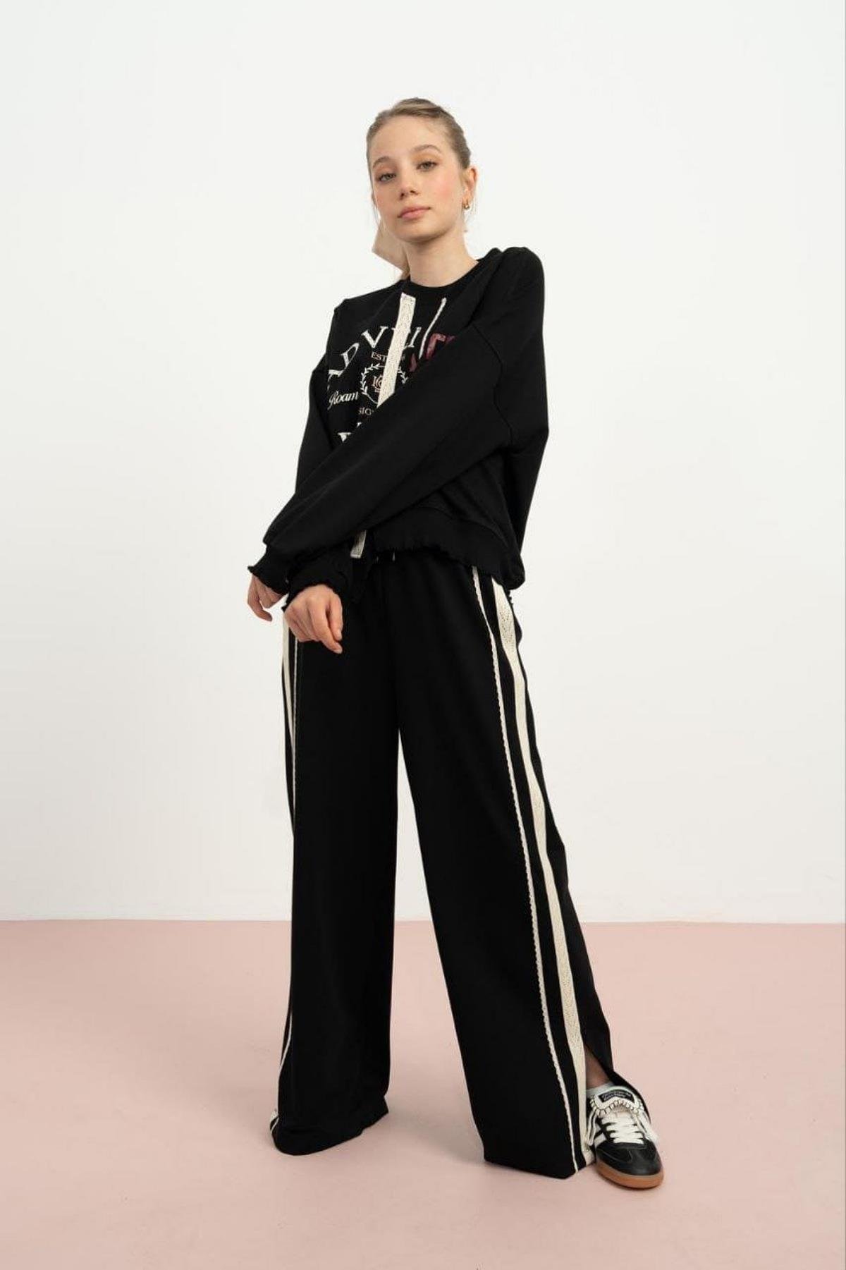 9-15 Yaş Kız Çocuk Paça Yırtmaçlı Eşofman Alt (LOC25KK07881)